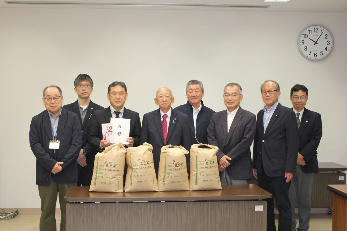 去る11月7日、地域食堂ネットワークの事務局がある鳥取市中央人権福祉センターにおいて、クラブより支援金と7R1Z 6LC合同で稲刈りをして収穫したお米を寄贈いたしました。